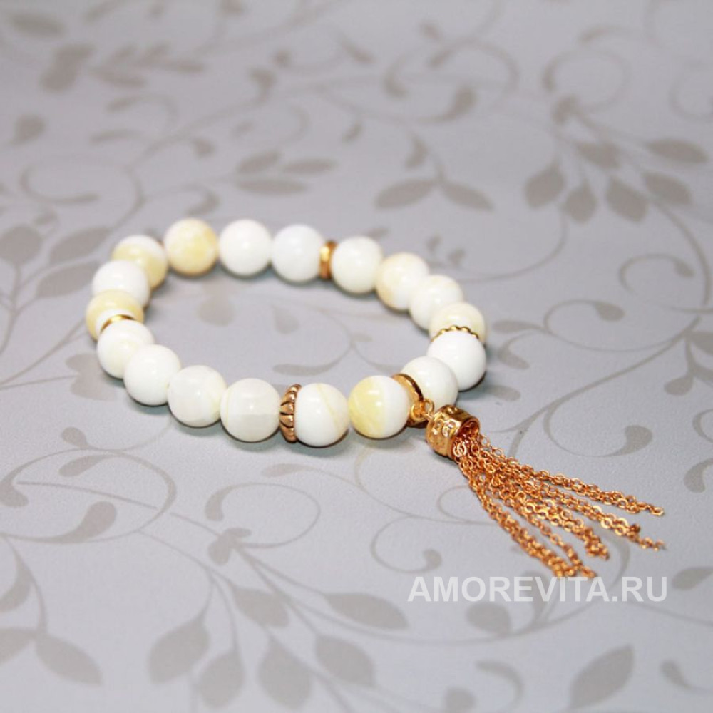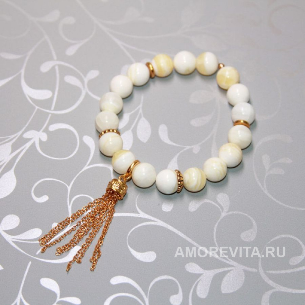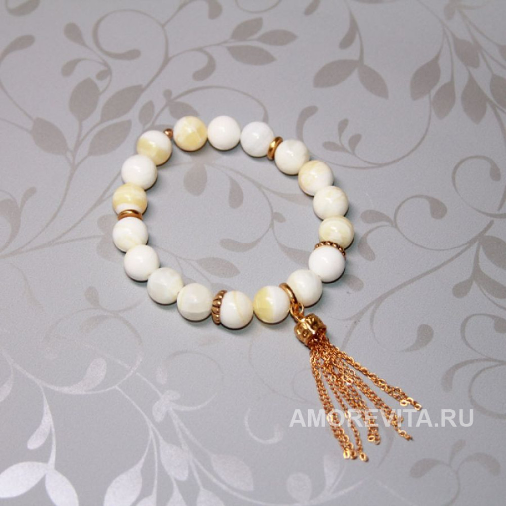 Браслет бело-желтый с красивой, модной и легкой подвеской из длинных цепочек.
