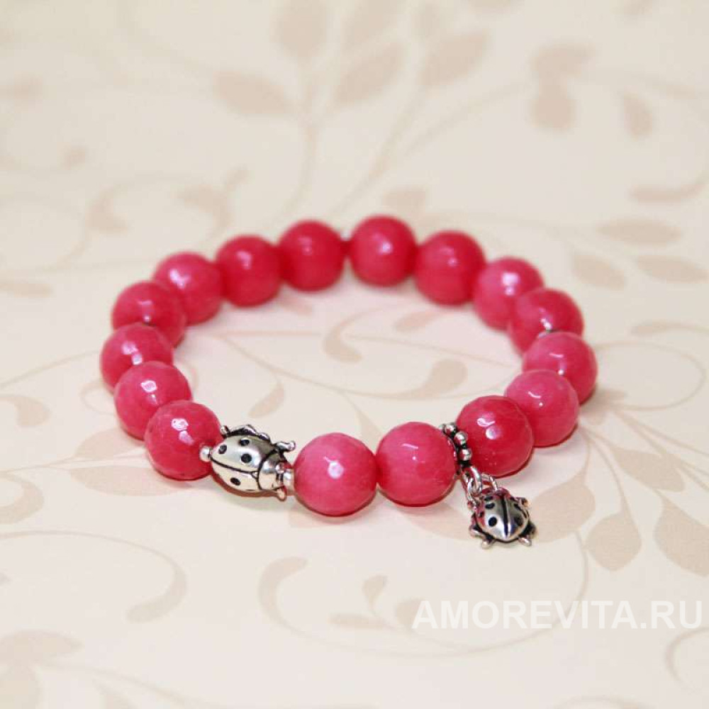 Очень "вкусный" ягодный и яркий браслет с бусинкой и подвеской божьими коровками.