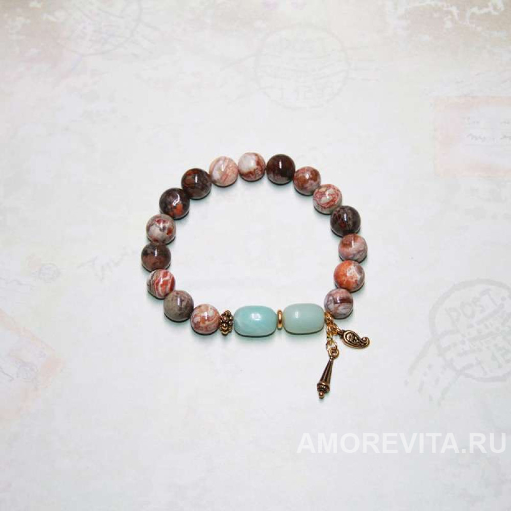 Браслет на каждый день из Яшмы и Амазонита с подвесками. Бусины Яшмы очень красивые и разные, ни один камушек не похож друг на друга.