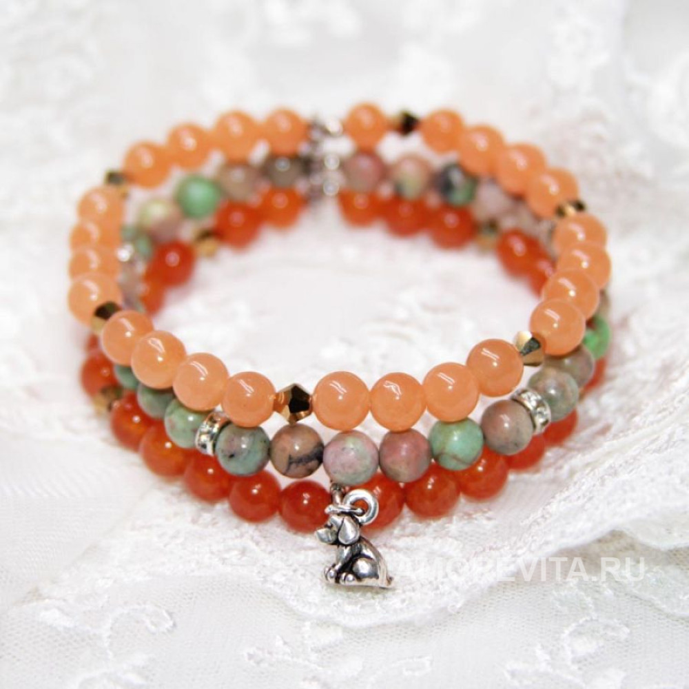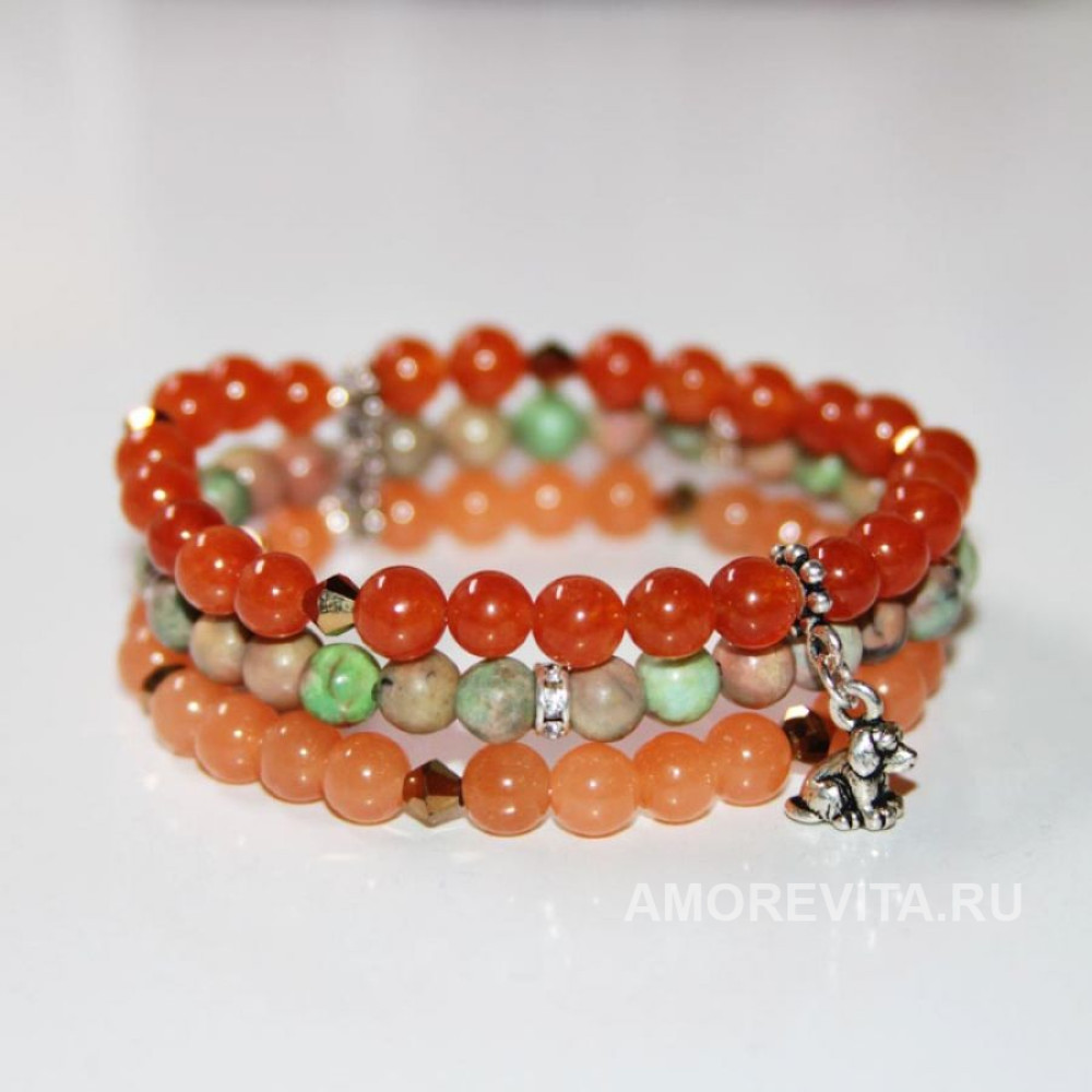 Камни (6мм) - Варисцит, Агат темно-оранжевого и нежно-оранжевого цветов.