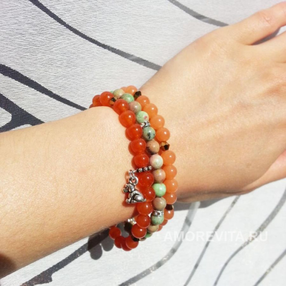 В двух браслетах из Агата присутствуют вставки бусин чешского стекла.