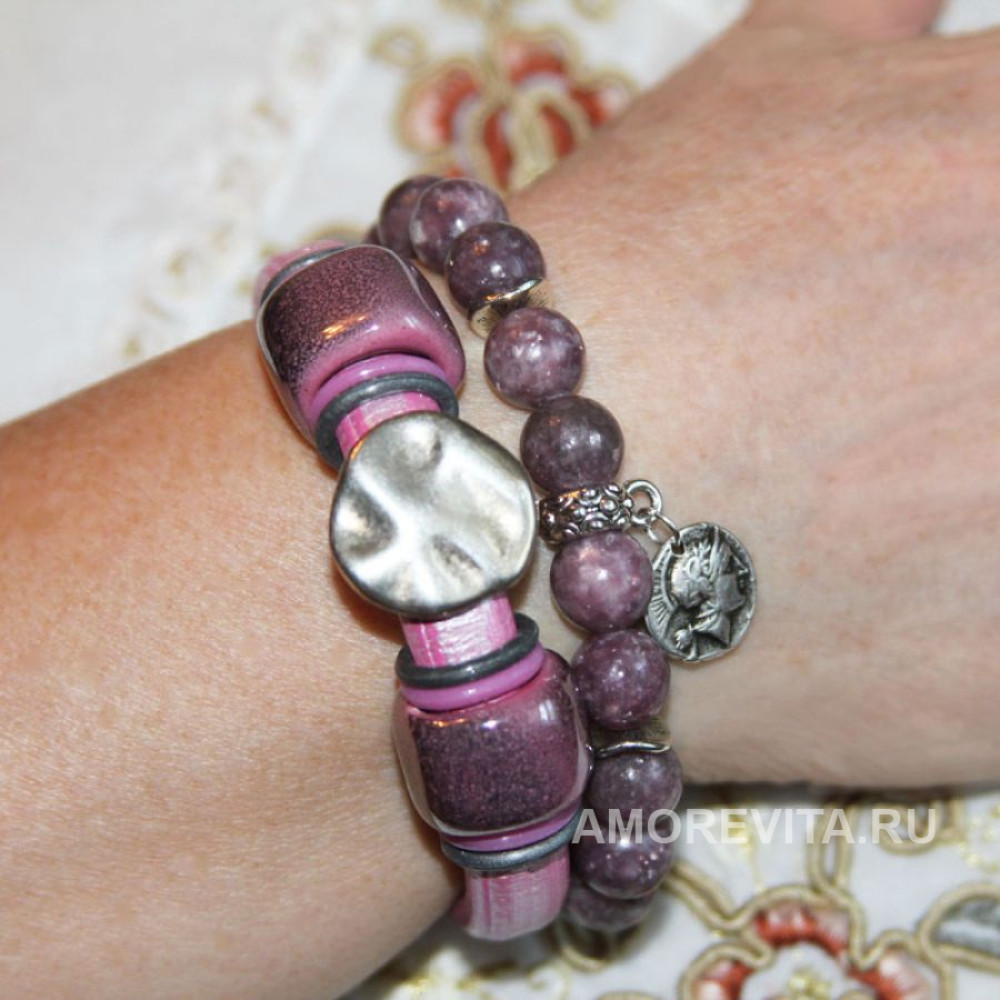 Комплект из двух браслетов розового цвета. Комплект очень продуман и подобран именно так, чтобы была возможность носить оба браслета вместе или каждый по отдельности.