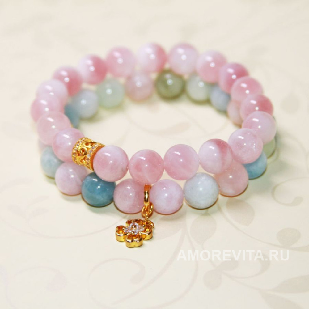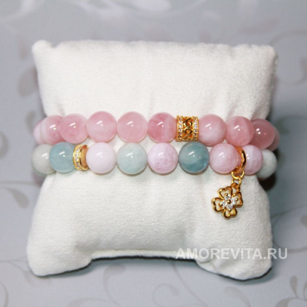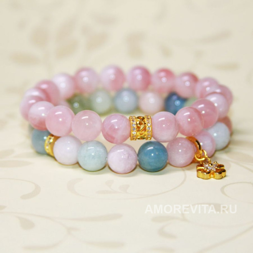 Камни (10мм) - красивое сочетание цветов - розовый Кварц мадагаскарский и разноцветные нежные оттенки Морганита.