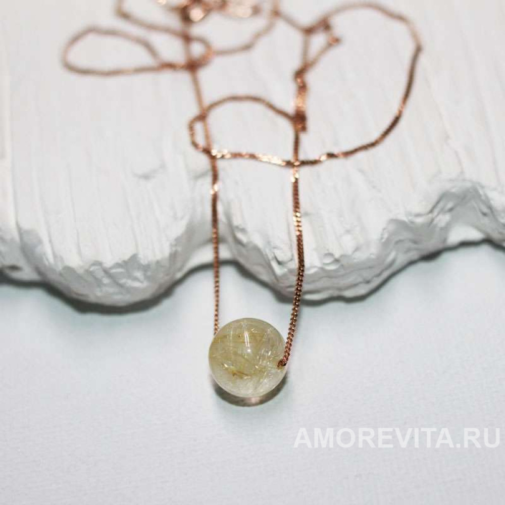 Чудесное украшение - бусинка натурального камня на позолоченной цепочке - волшебный по красоте и своим свойствам натуральный золотой Кварц рутиловый (золотые волосы Венеры - волосатик).