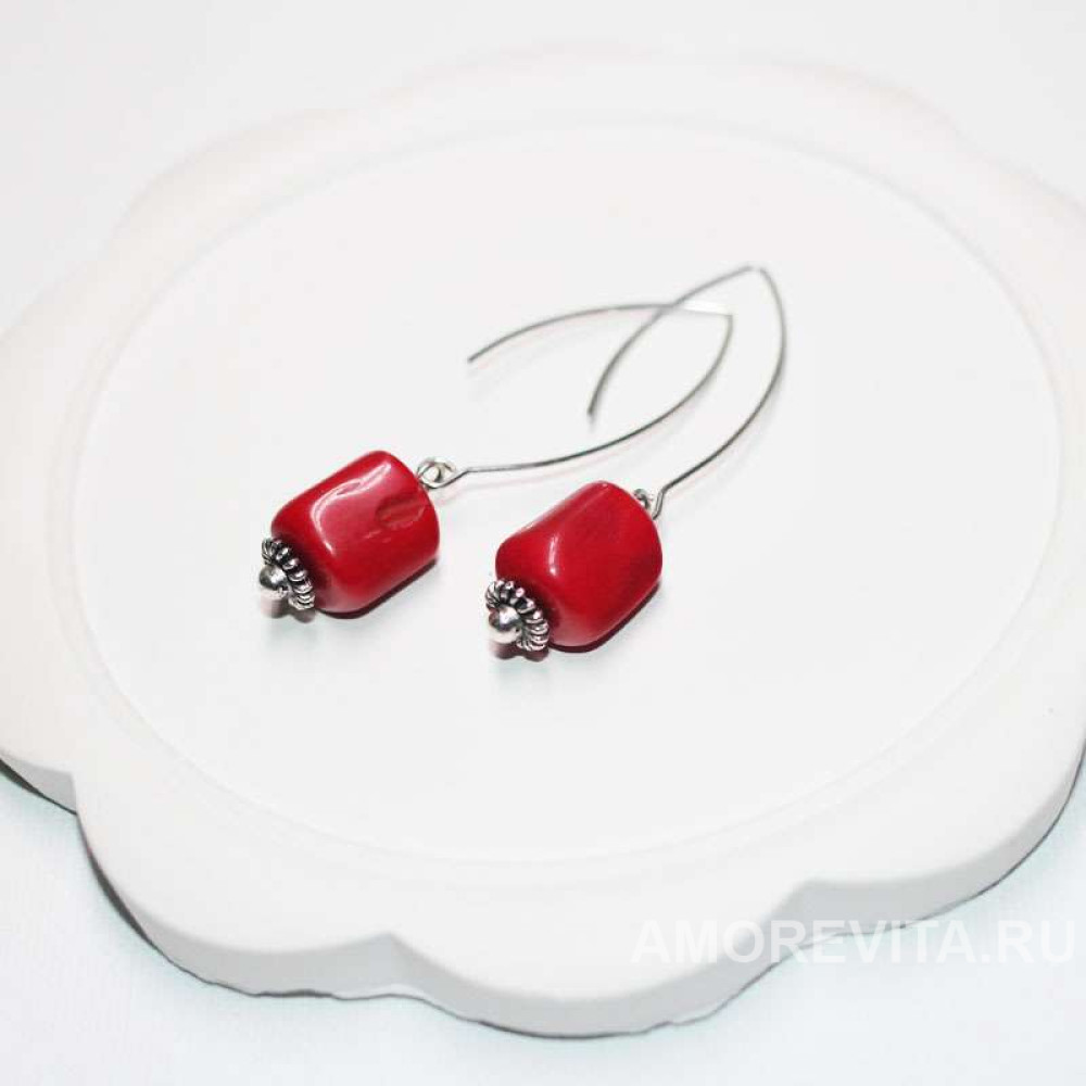 Яркие летние серьги из натурального Коралла. Очень стильные и заметные.