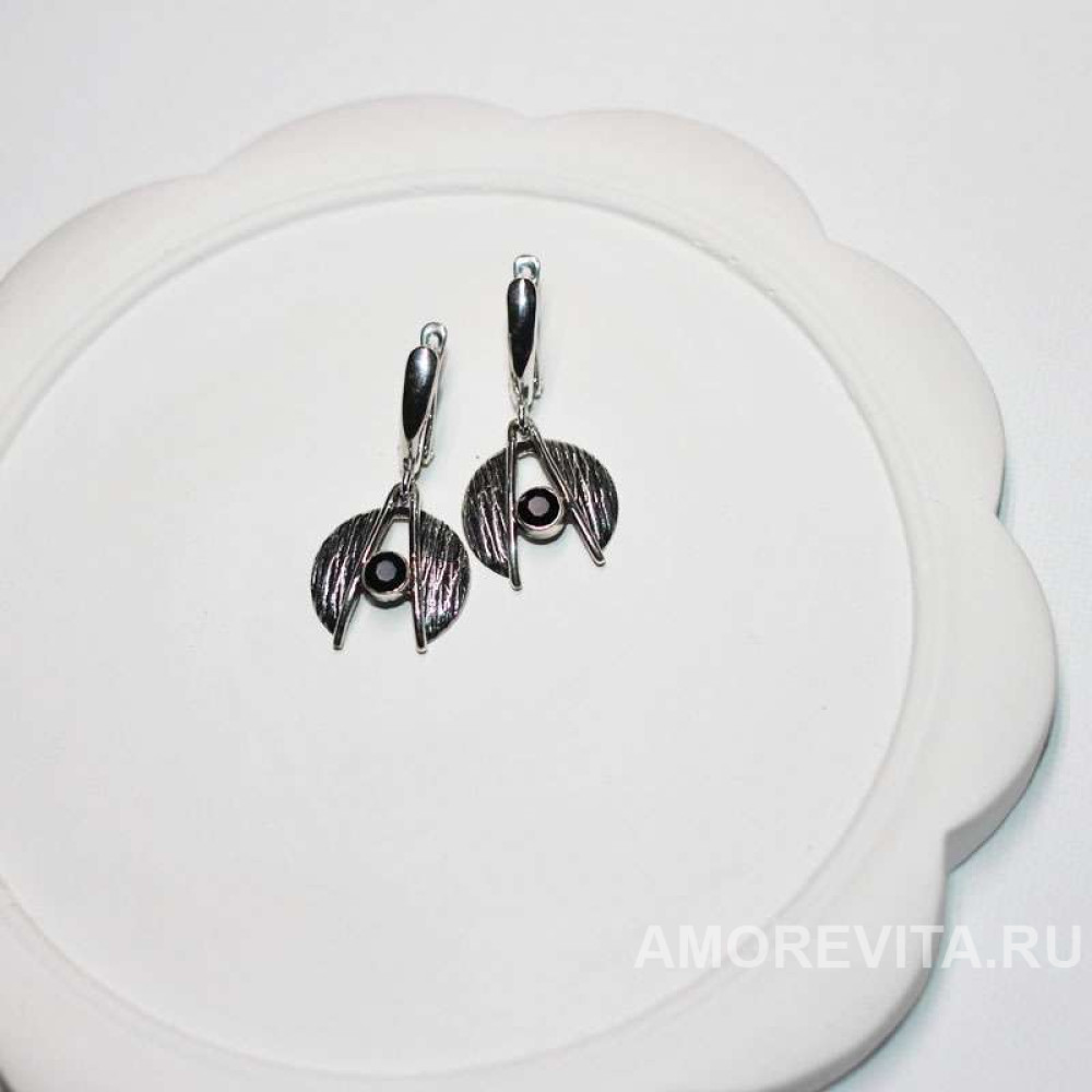 Очень стильные серьги из серебра 925 пробы с натуральным черным Ониксом.