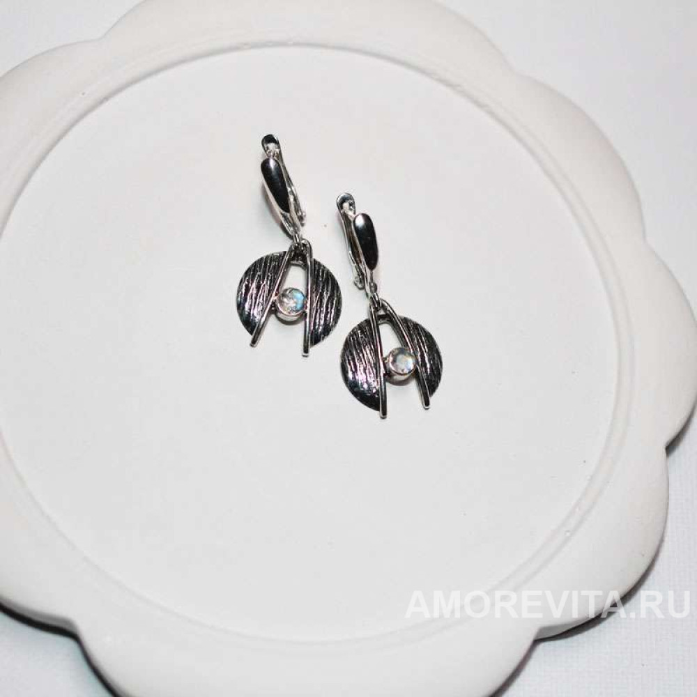 Очень стильные серьги из серебра 925 пробы с натуральным Лунным камнем. Качество камней высокое (ААА+), хорошая огранка.